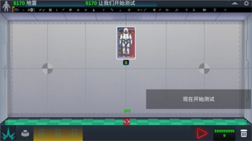 3、放置好武器之后,点击右下角的箭头,开始测试;