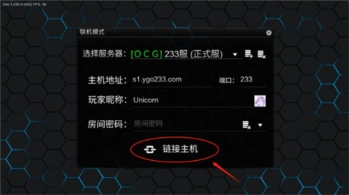 2、接着选择服务器、主机地址与玩家昵称,之后点击【衔接主机】按钮。