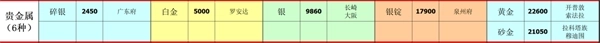 3、贵金属(6种)
