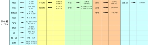 8、调味料(17种)