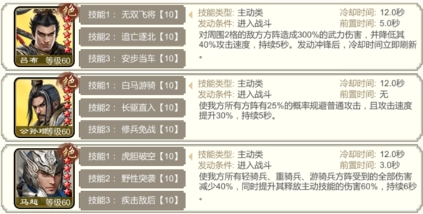 公孙瓒的自带buff技能,搭配上长驱直入这个主动输出技能,再加上修兵免战这一辅助技能。