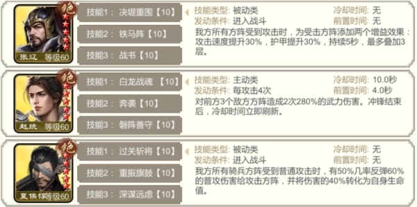 这是我们的核心输出队伍,由于游戏机制的特点,远程武将的输出表现更为稳定,而且弓骑兵能享受到的攻击增益效果非常多,输出能力极为突出。