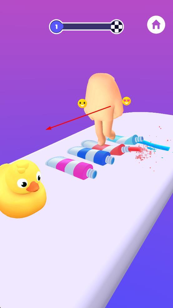 1、控制角色沿路径移动,通过滑动操作调整行进方向,收集彩色颜料类道具,为顺利通关打下基础。