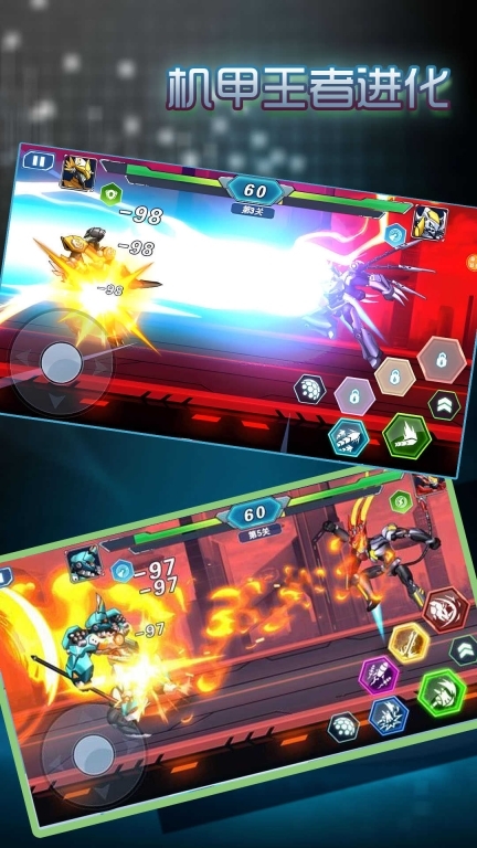 机甲王者进化是一款超有趣的机甲战斗游戏,玩家可以操控强力机甲,在充满未来科技感的世界里展开激烈对决。通过持续升级与进化,打造专属于自己的无敌机甲战队,去挑战更多实力强劲的敌人!