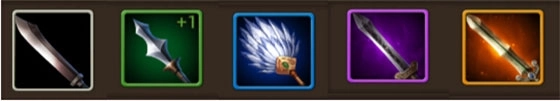武器的品级从低到高划分为白、绿、蓝、紫、橙五种,对应的附加属性强度也随之递增。刀类武器会附加御与勇两种属性,分别用于提升武将的物理攻击能力和物理防御能力。