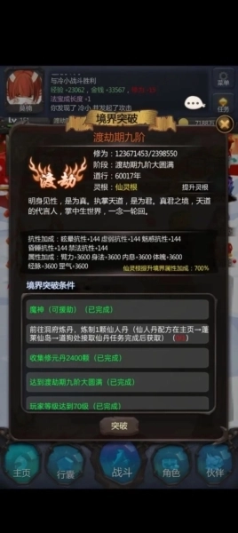 3、道友的主角和道侣最少需要10000的真元量才能打满回合上限25回合4、速度>boss,每个回合可以优先出手,否则反之;魅惑能力高于boss抗性,则技能效果起作用,否则只会有伤害效果必定不起作用。