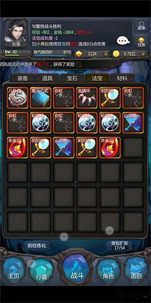 2、游戏中你拥有自己的洞府可以进行打坐,布下阵法聚灵,可以炼丹,还可以吟诗作赋,抚琴等。