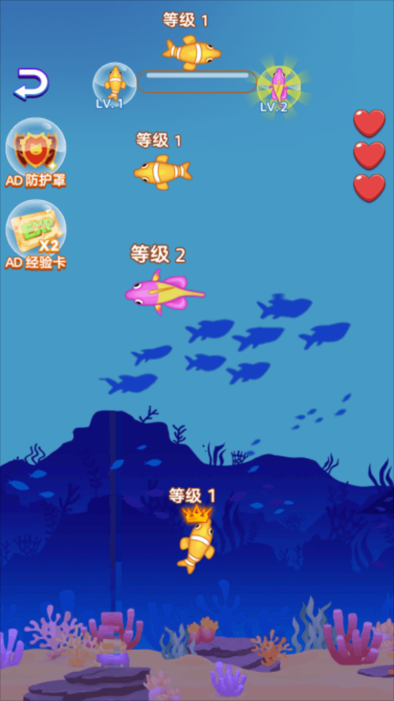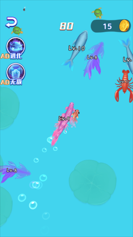 也可以去吞并那些比你更弱小的鱼群,让自己的鱼群不断壮大,最终称霸整片水域!