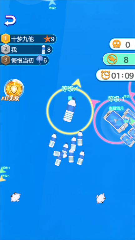 1、玩家在游戏里可以随时吞噬目标,以此让自身持续成长进化。