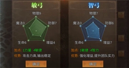 3、弓箭手:敏弓的加点思路比较清晰,前期推荐32分配属性点,到了后期则调整为42加点,这样的方案适配性很强。智弓的加点更偏向智力属性的堆叠,所以分配方式相对极端——前期一般是41加点,后期多采用51加点,这是单纯为了最大化技能加持效果的选择。不过,如果想兼顾攻速、提升自身输出能力,后期也可以考虑42加点的方案。