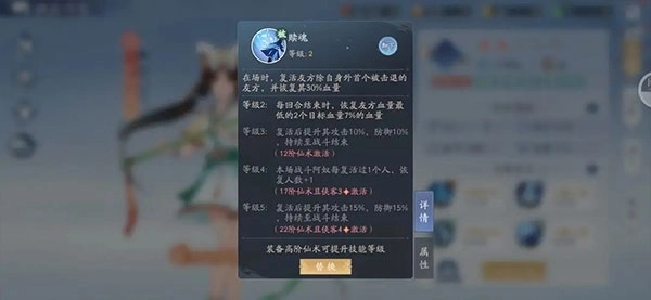 这里附上阿奴的4技能,我个人觉得它的强度相当高。不少时候在推进困难关卡时,依靠这个技能就能把原本只能拿到2星的评价提升到3星——没错,困难图里“侠客不死且通关”的条件,在侠客复活后依然是可以满足的。