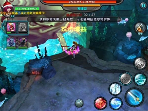 BOSS战之前会先刷新3个小BOSS:第一个是手持大刀的红色鱼人,它被击杀后会紧接着出现第二、三个拿叉子、爱跳来跳去的鱼人小BOSS。这两个小BOSS一登场,就别管小怪了,必须尽快击杀,速度越快越好——它们存活时间越长,对武神的威胁就越大。