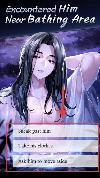 1、在【Encountered-Him-Near-Bathing-Area】场景中,选择【Sneak-past-him】这类选项,以推进相遇相关的剧情分支。