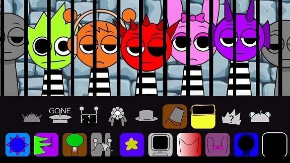 3.监狱sprunki模组有个特色恐怖模式,现在,我们把最后一个黑帽子图标拖到角色身上。