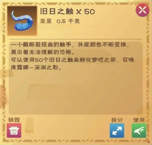 旧日之触是库露娜战宠孵化所需的道具,击败对应boss时必定会掉落1到2个;此外,击杀深渊椰寄蟹和希卡利扭曲巨兽也有机会获得该道具,两者的掉落概率分别为极低和中等。