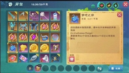 第一步:先确认背包里有梦呓之卵和足量的孵化道具,同时要保证坐骑/宠物栏还有空位