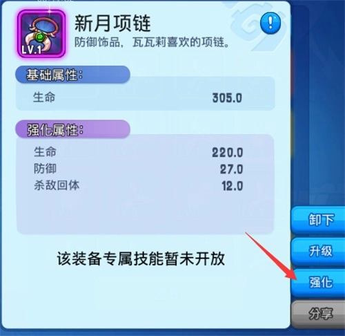 想让装备属性变得更强吗?现在版本只能靠装备合成和装备升级券来提升,等新版本把基础属性和强化属性分开后,点一下右边的装备强化系统,就能给强化属性加把劲了。只要强化属性提上去,哪怕是绿色装备,和蓝色装备比起来也不会差太多,而且强化到特定等级时,还能解锁装备独有的专属技能呢~