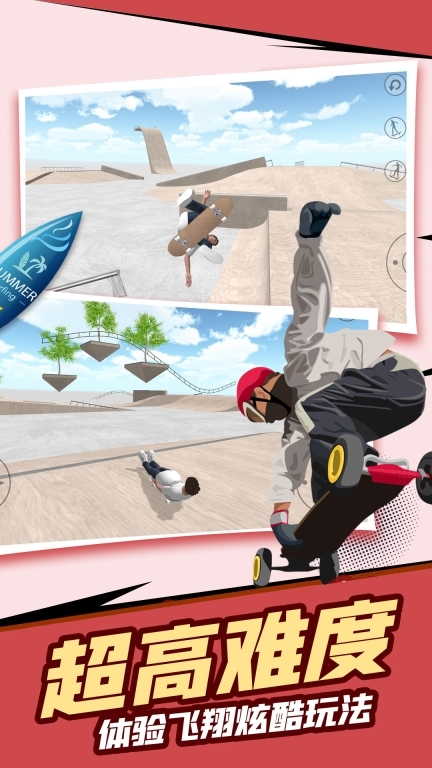 游戏里有各式各样设计精美、品质上乘的滑板等待玩家解锁并使用,让玩家能亲身感受高级滑板带来的独特使用体验。