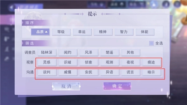 在“调查”“传闻”这类玩法里,都得借助对应影迹的调查员来获取线索,这些线索分为【观察】【沟通】【研究】【身手】四大类别,点击【影迹详情】就能查看影迹的具体信息。
