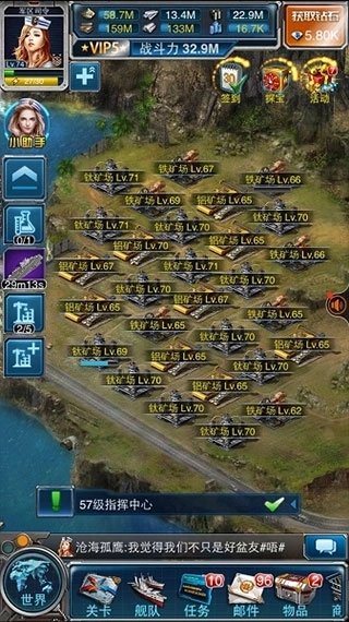 1、收集资源,组建舰队,升级科技,打造自己的蓝海海军。