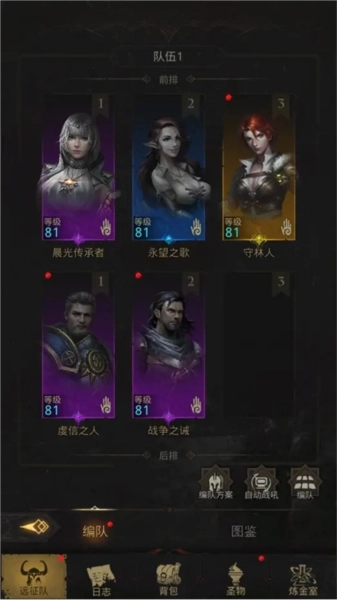 1、这款游戏仅需6个角色即可,所以只要合理规划阵容,觉醒6个角色就不算亏。永望、晨光这两个奶妈占两个位置,坦克占一个位置,输出占两个位置,还剩一个位置可自由觉醒,不过建议优先觉醒性价比高的辅助,像铸魔人、暗鸦、群宝、枯萎之心这类……后期若想转阵容,可以先把新角色觉醒到一级,再将原主力的等级传承过去。但转阵的代价是要重新弄装备、重新刷品格,一定要谨慎操作,不然可能会出现输出比原来更低的情况。