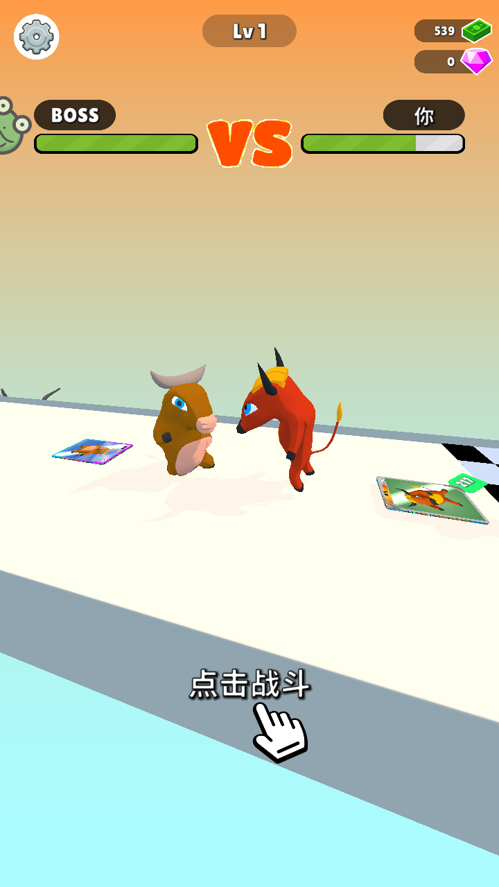 3、进入对战界面后,点击【点击战斗】按钮,根据双方的血量条情况,运用积累的资源与BOSS展开对战,力求取得胜利。