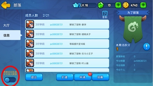部落创建成功后,酋长有权编辑部落相关内容,并且可以设置是否需要审批玩家的加入申请。如果设置为无需审批,其他玩家申请加入后就能直接成为部落成员;要是设置为需要审批,那么玩家的加入申请就需要在信息页面进行审核批准。