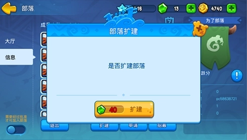 酋长的权力与义务是相伴相生的——在信息栏界面中,部落能够进行扩建操作,扩建后部落成员的人数上限会得到提升。不过,部落扩建需要消耗原谅宝石和部落经验,而且不同等级的部落,其升级所需的原谅宝石数量和部落经验值也各不相同。