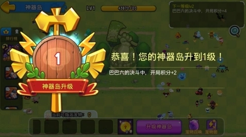 每当有新宠物登上神器岛,蛮王之锤就能汲取大量自然之力,宠物等阶越高,所提供的自然之力也就越丰厚;而已经在岛上的宠物,还会定期通过祈福持续产出自然之力,助力蛮王之锤稳步提升等级。每次等级提升都会为玩家解锁一项增益效果,比如:巴巴六决斗的奖励加成、萌宠探险队的难度下调、挂机收益的增长等。