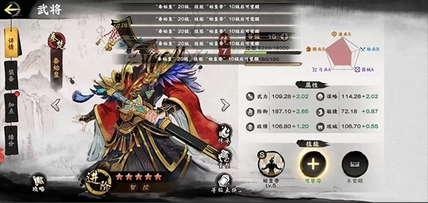 4、培养:培养能够提高武将的属性数值与技能等级。建议依据武将自身的特性以及战斗方面的需求,来确定培养的方向。