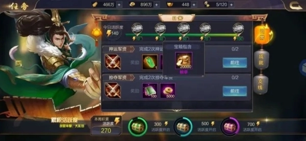 4、练兵:当君王殿升到7级后,会解锁演武场开启练兵功能,消耗少量铜币和30点体力就可以直接获得经验。这是主公在后期快速提升新武将等级的主要方法之一,演武场的等级越高获得的经验就越多(委任练兵使也可以额外获得经验加成)。在使用练兵功能时,出阵一个武将会获得所有经验,出阵2个会平分总经验,最多出阵3武将。