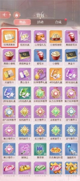 伙伴的成长过程中,三小姐的支持与鼓励是不可或缺的。给伙伴赠送资质徽章,能有效激发他们对应的能力;而使用资质券,则可以助力伙伴完成资质升级~记得要查看背包里是否有可使用的伙伴资质券哦,在背包中使用伙伴资质券后,会随机得到各类特长资质券,之后就能为你想重点培养的伙伴提升资质啦。