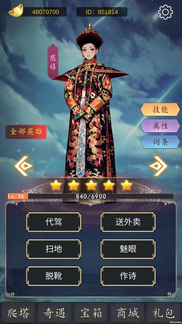 1. 该游戏以二次元英雄训练为核心玩法,玩家可通过选定不同的训练路径,提升英雄的星级、等级与圣兽属性等,无需进行繁琐的装备刷取操作。训练结束后,借助获取的训练点,还能对随机技能进行洗练,从而打造出独一无二的英雄。