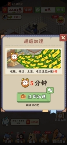 3、在游戏过程中,需要持续消耗金币以解锁更多设施,同时购买更多新菜品,从而满足多样化的需求。