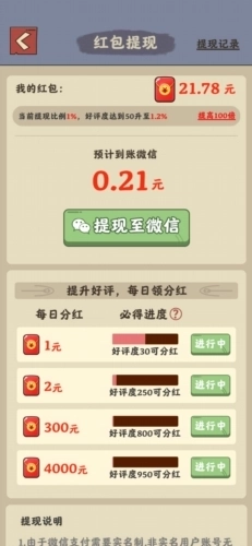 6、只要完成任务就能领取红包,并且可以提现至微信。