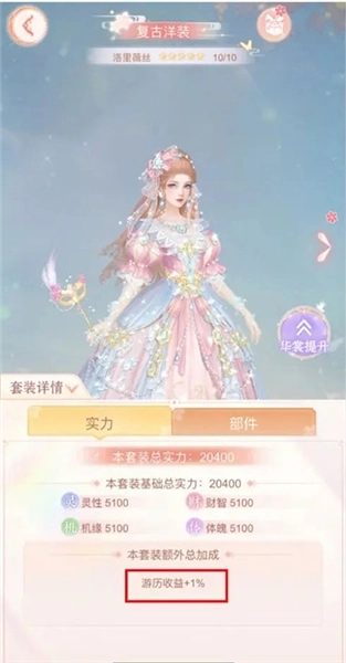 特定的套装还能增加游历收益呢!那究竟有哪些套装可以提升游历加成呀?据了解,目前能提升加成的套装仅有一套——复古洋装-洛里薇丝,这套服装能在游历行装基础收益加成的前提下,额外再获得1%的收益加成。要是仙主大人对这套套装进行注灵或者升阶,额外收益的加成也会跟着不断提高哦!