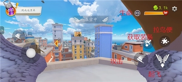 1、玩家在进入游戏后,只需点击起飞操作,就能进入飞行状态;就像下方图片所展示的那样,点击起飞之后,该操作就会转变为行动键。