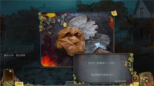 进入游戏后,先拿起那本册子,接着点击旁边的纸团,把纸团拨开,就能获取到线索和钥匙了。