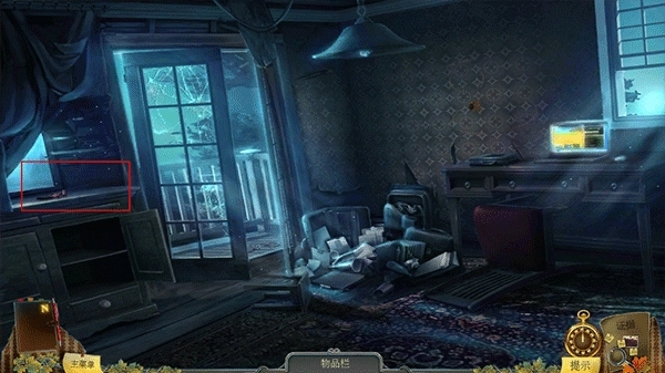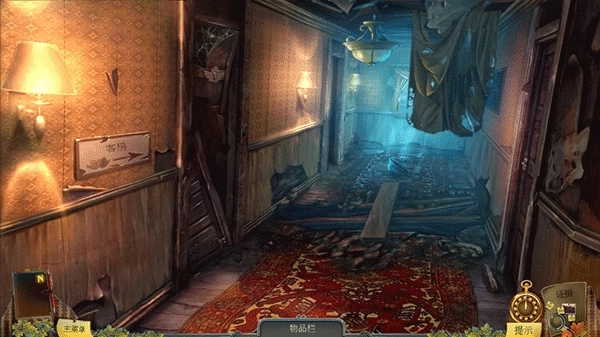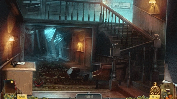 我们点击左侧的桌子,正要展开调查时,突然伸出一只手拿走了某个物品(本猪都被吓到了)。再次点击桌子,就能获取线索和灯泡。接着把倒地的椅子扶起来,装好灯泡后房间便亮了起来。点击墙壁,我们调查到的所有线索都会显示在墙上,只需将同类证据摆放整齐即可。
