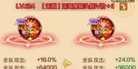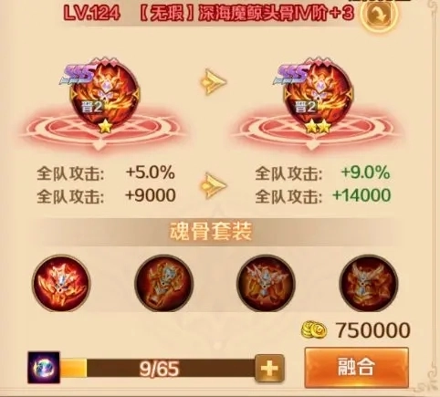 5、魂骨晋升:魂骨晋升只有深海魔鲸以上的魂骨才能进行晋升,可以提升全队的属性效果,而且激活两件以上的晋升装备,还能够解锁新的晋升技能,但是晋升材料是比较难获取的,大家可以关注一下游戏内的活动,可以通过这些活动来进行晋升。