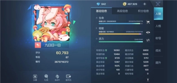 其中前两类都是实打实的,有多少在能力面板上就加多少,而基础属性则需要进行转化,例如:体质可以转化成生命、双防和爆抗,力量可以转化成生命、物攻和破甲等等,但是它的转化比率各职业是不相同的。