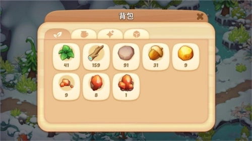 3、每次消除的障碍会转化为各种建设家园需要的材料存放在背包里。