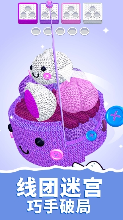 3. 随着关卡的逐步深入,你会遇到形态各异的毛线球容器和整理工具,这些元素一同营造出丰富的视觉感受与操作上的多样变化。