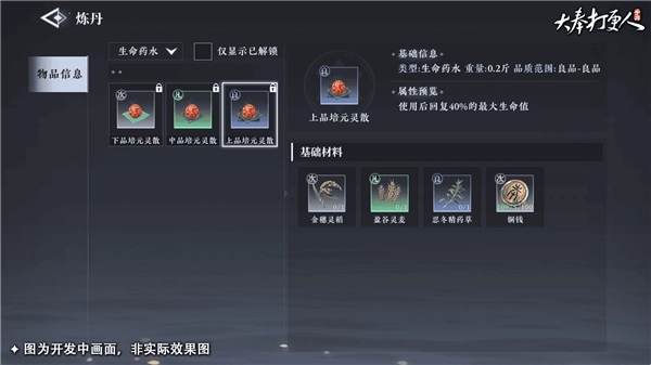 炼丹以药入道,可炼制回血保命的灵丹妙药,或是永久增加属性的“仙丹”,更甚者有生死人而肉白骨的神效!