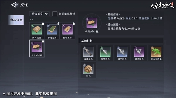 烹饪追求各式菜艺,自他们出手的菜品可增加精力,或是增加各种buff,希冀食用者能周身通泰,迎接大奉江湖每一场挑战!