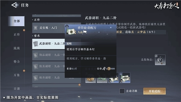 在完成《税银案》任务后,会解锁生产系列副职任务,在该任务中玩家需要跟工匠师傅对话(比如武器副职——孙师傅),完成相应的任务条件,即可解锁基础的制作配方了!