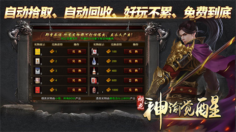 这款游戏延续了经典热血的传奇玩法,上线就免费赠送自动回收、自动捡物等多种便捷功能,操作简单易上手,无需复杂操作即可轻松体验。完成剧情boss挑战后,还能获取各类特色时装与强力武器,让你尽享畅快战斗的乐趣。