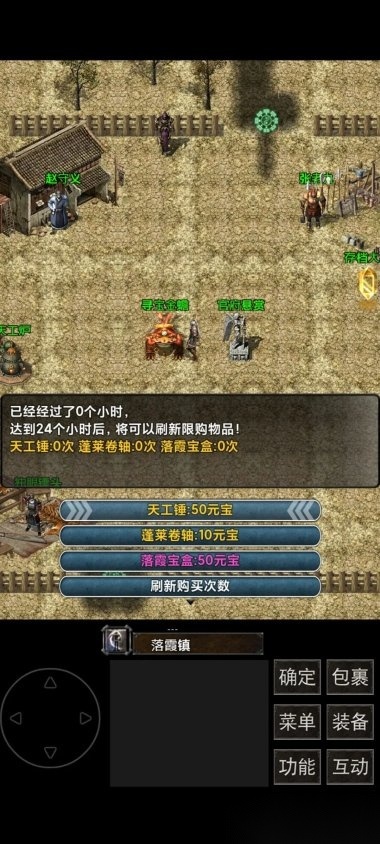 24小时内可以刷新购买次数,推荐优先选择落霞宝盒,它能开出阵法;同样的,第二张地图的村子里也有这家商店,也需要过去点击对话一次才会开始倒计时刷新。
