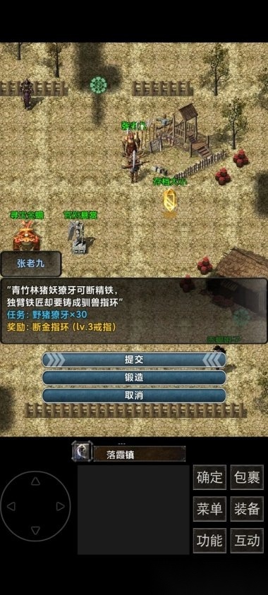 在新手村和张老九对话时,可以选择锻造功能。锻造装备需要对应的材料,只有当材料数量足够时,锻造选项才会显示。需要注意的是,锻造失败的话装备会破碎,所以记得使用保护符——也就是天工锤来避免这种情况。