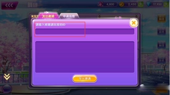 点击发出邀请,输入玩家的ID点击发出即可。在旁边的申请信息中,可以看到想要加入舞团的玩家哦!团长可以选择”同意“或者”拒绝“来决定是否允许该玩家进入舞团!